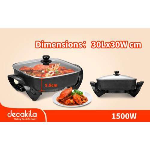 Networking & CCTV CamerasDecakila Electric Skillet 1500W – KEEC051B. This versatile electric skillet features a powerful 1500W heating element for fast and even cooking, making it perfect for frying, sautéing, simmering, and more. The non-stick cooking surface ensures easy food release and quick cleanup, while the adjustable temperature control allows for precise cooking. Its large cooking area and glass lid make it convenient to monitor your meals, making this electric skillet a must-have for any kitchen.