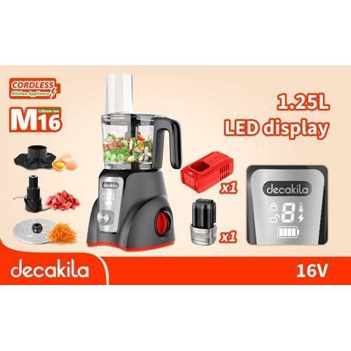 Discover the ultimate convenience in food preparation with the DECAKILA KEMG027B Cordless Food Processor. Featuring a spacious 1.25L bowl and a powerful 250W motor, this food processor operates effortlessly on a 16V battery with a 2000mAh capacity, ensuring reliable performance wherever you are.