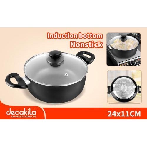 Introducing the Decakila KMEP011B Casserole with an induction bottom, designed for superior cooking performance. This versatile casserole measures 9.5 inches (24 x 11 cm) and is crafted from durable aluminum, ensuring even heat distribution and efficient cooking.