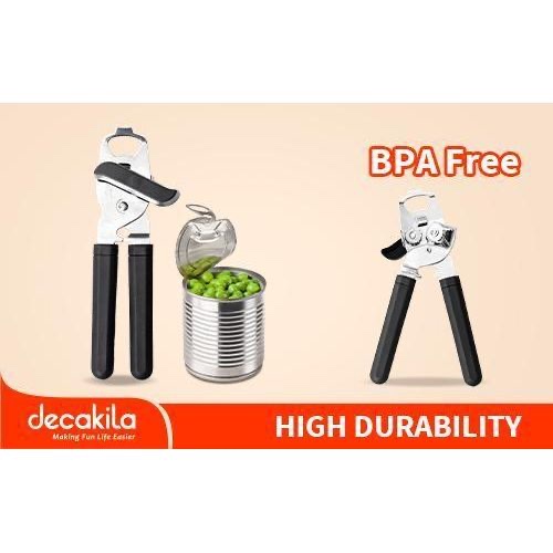 The integrated bottle opener built into the head adds versatility, allowing you to handle both cans and bottles with ease. Its thoughtful design includes a hole for easy storage. Packaged on a paper card, the Decakila KMTT067B is a practical addition to any kitchen, combining functionality and durability in one essential tool.